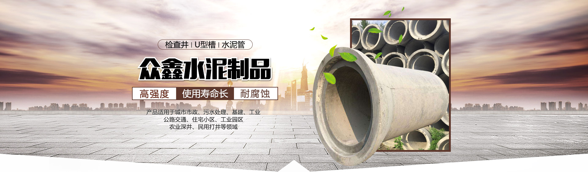 吉林眾鑫水泥制品有限公司,位于吉林省吉林市龍?zhí)秴^(qū)江北鄉(xiāng)官地村,交通便利,廠區(qū)占地面積2萬余平,公司秉承客戶至上,信譽(yù)為首,以人為本,安全為先為經(jīng)營理念,其主要生產(chǎn)各種規(guī)格的平口和承插口鋼筋混凝土排水水泥管,水泥預(yù)制檢查井、u型槽等水泥制品。適用于城市市政、污水處理、基建、公路交通、住宅小區(qū)、工業(yè)園區(qū)、工業(yè)、農(nóng)業(yè)深井、民用打井等領(lǐng)域。